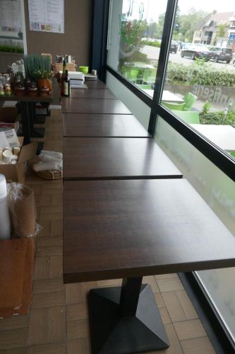 Horecatafels op zwartmetalen voet en houten blad : 10 stuks