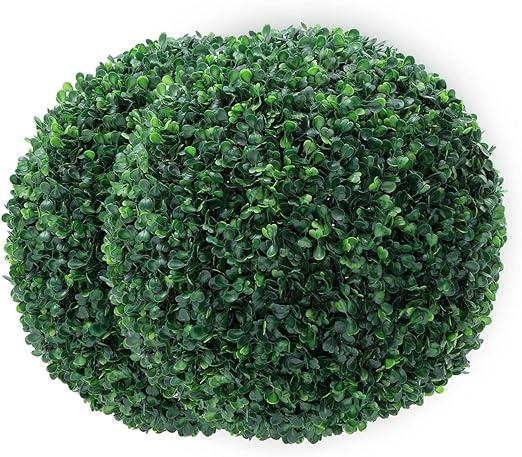 Ongebruikt, Homodeco Set van 2 decoratieve kunstbuxusballen, 37 cm, groene kunststof vormsnoeiballen voor tuin- en terrasdecoratie, B0B4RBKRP8