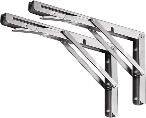 Ongebruikt, ok, vijzen en pluggen ontbreken, YUMORE Opvouwbare Plankbeugels 400mm Roestvrijstalen Klapbeugel zwaar Belastbaar Planksteunen Wandmontage Vouwbeugel, Max 150Kg, L-hoek Inklapbare Plankdragers voor Zitbanken en Planken, 2 stuks, B08MTDGTLB