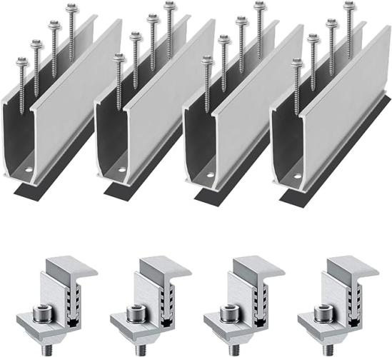 Ongeopend, in seal, 2 x Warmfay montageset voor zonnepanelen 1 PV, balkonkrachtcentrale houder balkon, fotovoltaïsche bevestigingssysteem 4 profielrails 180 mm, 4 eindklemmen 30-35 mm zonnepaneelhouder plat dak, B0BPCH3TZK