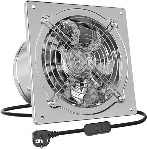 Minieme gebruikssporen, getest en werkend, volledig, ok, HG Power Afvoerventilator, 200 mm, 980 m³/uur, badkamerventilator, stil, met terugloopklep, krachtige wandventilator met EU-stekker voor keuken, badkamer, garage, kelder, zilver, B0CFZDBQF3