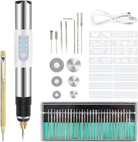 Graveergereedschapsset, USB mini graveerpen met graveeraccessoires