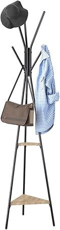 Ongebruikt, compleet, zwart, ok. BAKAJI Toronto zwarte staande kapstok met 5 haken en 2 planken voor de ingang, kledingrek voor jassen, hoeden, tassen, B0CRRTYSGC