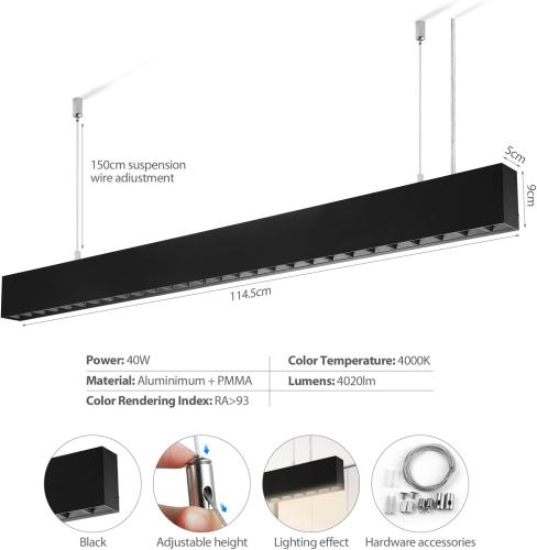 Ongeopend, Zewanny LED hanglamp 120 cm hanglamp kantoor eettafel, 40W 4000K moderne hanglamp in hoogte verstelbaar voor woonkamer, versie floodlight + spotlight, B0BPY1611C