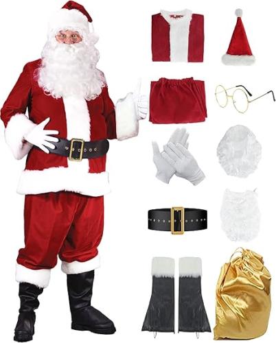 Ongebruikt, ok. Miulruma Kerstmankostuum Santa Claus Sinterklaas kerstkostuum Kerstmis fluwelen pak met kerstmuts pruik baard riem en handschoenen Deluxe set carnavalskostuums voor heren dames A038 3XL