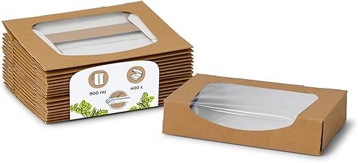 Ongeopend, in seal, BIOZOYG Organische kartonnen dozen met venster I take-away dozen met groot venster van PLA - nat-proof lekvrije composteerbaar I 400 st. patisserie dozen I patisserie box 900ml, B09BR3Z69M
