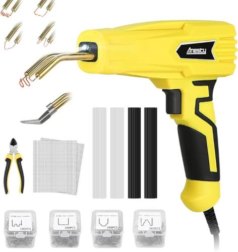 Ongeopend, in seal, Anesty Kunststof lasreparatieset, 100 W kunststof lasmachine met 400 nietjes, kunststof laspistool voor bumperreparatie, 40 lasstaven, tangen, B09Y52RMM1