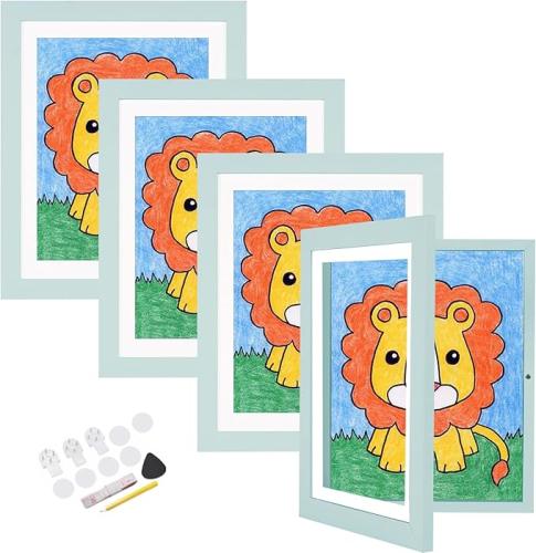 Ongeopend, in seal, Veelot 4 sets fotolijsten kindertekeningen A4 frontale opening verwisselbare kinderkunstlijsten voor kinderen kunst projecten school werk handwerk A4 muurkunst (blauw 4 set), B0CLLKRR5Q