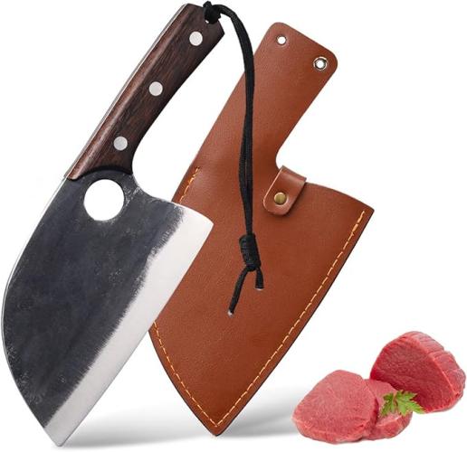 Ongebruikt, ok, Fubinaty Hakmes Handgesmeed Slagermes Vleesbijl Japans Koksmes Keukenmes van koolstofstaal met echt lederen schede Full Tang-houten handvat, B09LVQYBZZ