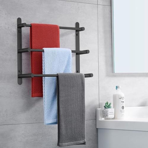 Ongebruikt, ok, originele verpakking ontbreekt, Lolypot 304 roestvrij staal wandgemonteerd handdoekenrek, 3 bar wandgemonteerd handdoekenrek, badkamer keuken handdoekenrek, zwart, 40 cm, B09G6DW6RX