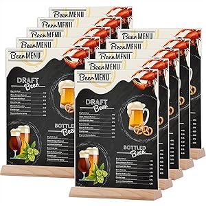 Ongebruikt, volledig, ok, Srvnpioy A4 acryl tafelstandaard 10 stuks, A4 houten menuhouders voor tafels, kunststof A4 display stand up tafel praters voor restaurants, hotel, school, kantoor, B0BKJKFH1H