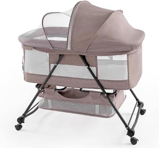 Ongeopend, in seal, Carvapet Babyreiswieg, wieg voor baby's van 0-6 maanden, met 4 wielen, eenvoudig inklapbaar bedbed met ademend zijnet en opbergmand, matras en muskietennet inbegrepen (Kaqi), B0BX3W4RXY