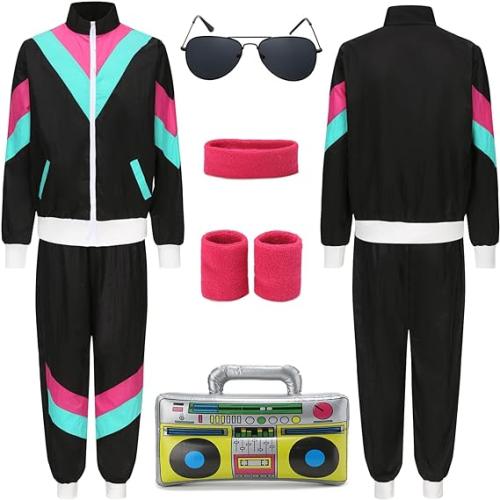 Ongebruikt, ok. Jaren 80-kostuum trainingspak pop art voor retro stijl badkamer smaak party assi pak Assi jaren 80 90 outfit kleding accessoires voor dames heren joggingpak blauw, B0BRSMT9S4