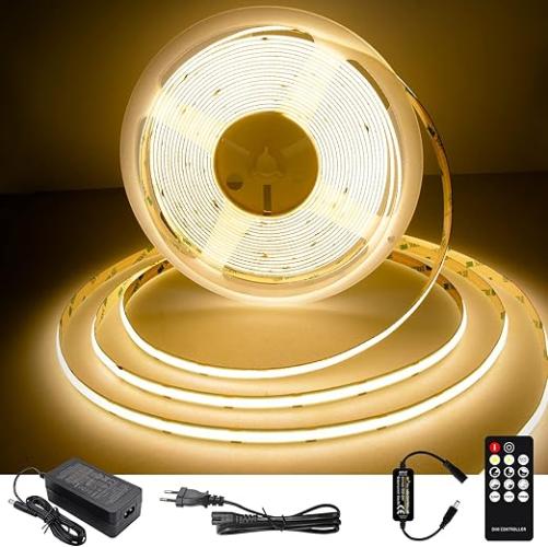Ongebruikt, werkt correct, TTWAY COB-ledstrip, 2700 K, warmwit, 10 m, dimbaar, 24 V, flexibele COB-ledstrip, 384 leds/m, GS-voeding, met RF-afstandsbediening, CRI90+ helder onderbouwlicht voor televisie, doe-het-zelf decoratie [Energieklasse F], B0BHZ6C9GW
