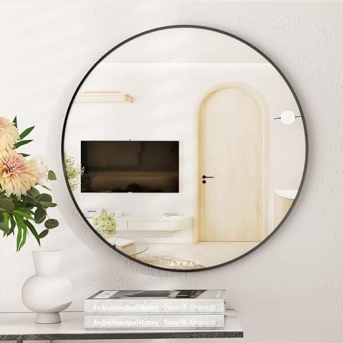 Ongebruikt, zwart, ok. Koonmi 70 cm ronde spiegel, zwarte spiegel, ronde wandspiegel met aluminiumlegering frame voor badkamer, wastafel, woonkamer, slaapkamer, entree, wanddecoratie, B0B3J37RL5