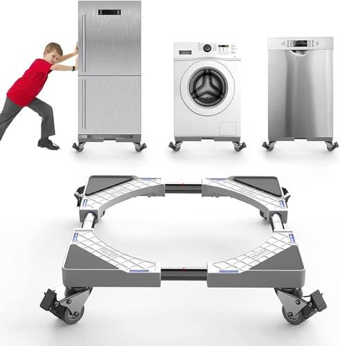 Minieme gebruikssporen, ok, zwarte beschermingsdriehoekjes ontbreken, geen doos. DEWEL Houder voor wasmachine met 4 wielen, basis voor koelkast voor wasmachine en droger, verstelbaar in de lengte 45 cm-69 cm, draagkracht 300 kg, B07SW3NFCY
