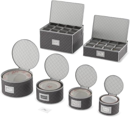 Ongeopend, ok, Woffit Servies Opbergset - Gewatteerde Containers voor Series & Glazen - 12 Personen, 6-delige Servies Opbergkit bevat ook 48 Vilten Beschermers voor Borden, B07DGG4QPQ