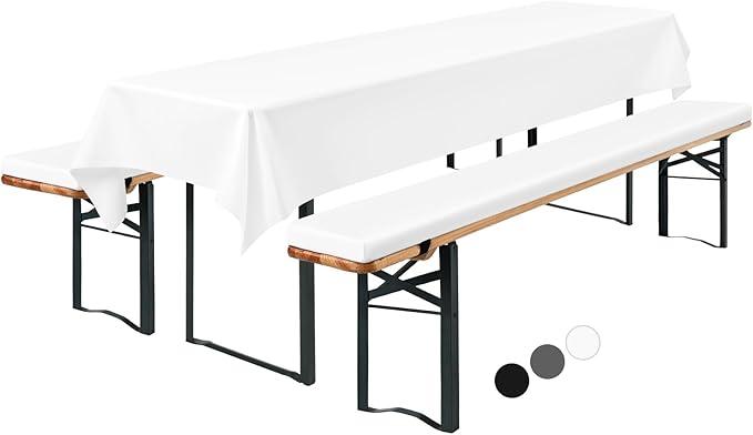 Ongeopend, in seal, Showgeous bierbankset (3 stuks), 1 x tafelkleed van 250 x 100 cm voor een biertafel van 220 x 70 cm en 2 x gevoerde bierbankkussens van 220 x 25 x 3 cm, biertentgarnituur (wit, waterafstotend), B0CS6C2X8C