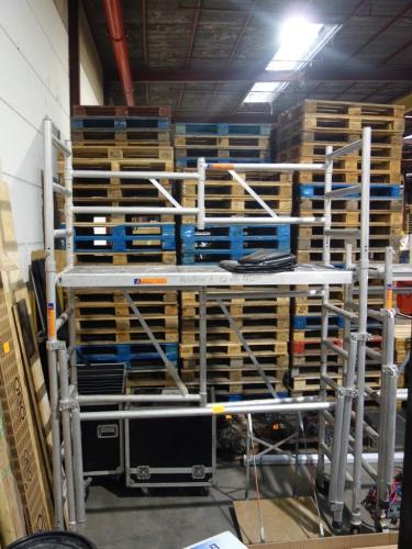 stelling + opzetstuk + loopplank + 4 wielen + 2 stabilsatorpoten + tussenligger + materiaalplatform