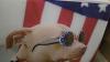Nieuw in doos - 8 stuks - Muurkader in glas - Foto van hond met zonnebril - 40x40