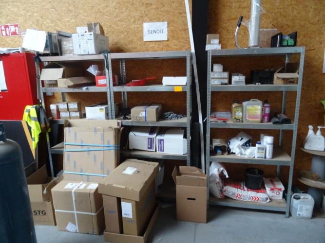 inhoud: divers toebehoren sanitair, filters, strooizout, foliewikkelaar,...