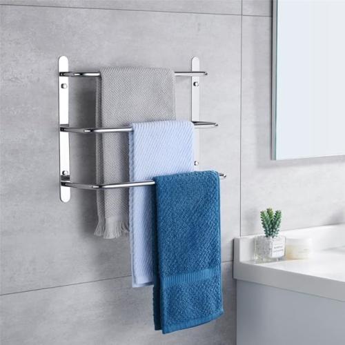 Ongeopend, ok, 2x Lolypot Handdoekhouder van roestvrij staal 304, wandmontage/wandbevestiging, met 3 stangen, voor badkamer en keuken (chroom, 40 cm), B09FPLNJXR