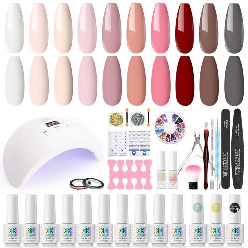 Ongeopend, in seal, RSTYLE Gelnagellakset, starterset met lamp, 48 W, 31 stuks gelnagels, starterset, 10 kleuren, roze, nude, uv-gelnagellakset met uv-lamp voor gelnagels, nagellijm, nail art, B0B6CCVX23