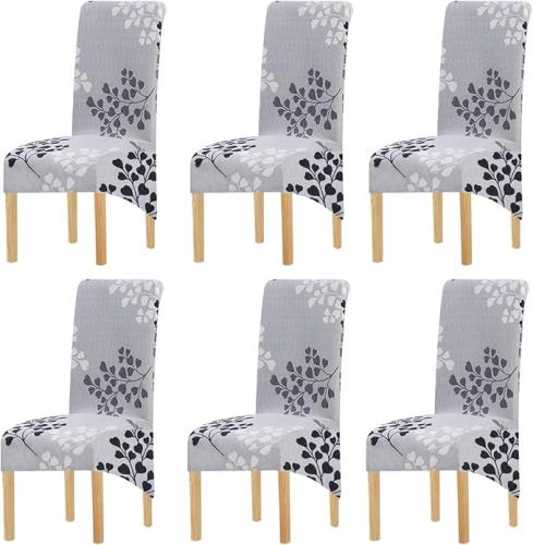 Ongeopend, ok, Keluina Stoelhoezen met print, stretch XL stoelhoezen voor eetkamerstoelen, 2/4/6 stuks elastisch hoes voor eetkamer, bruiloft, banket, party, decoratie (grijs-2, 6 stuks), B088M9JLLP