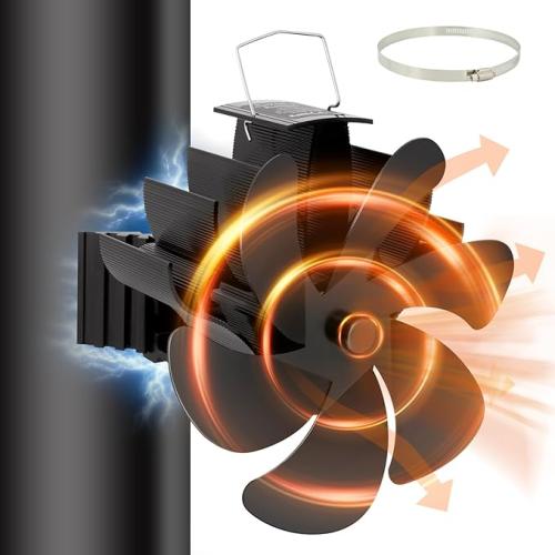 Ongebruikt, ok, Enkel Fan aanwezig, BSWAY Upgrade kachelventilator, 6 vleugels, stroomloze stille werking, warmteaangedreven ventilator, kachels zonder stroom, warmteaangedreven ventilator voor hout/houtbrander/open haard, , B0CMD4HF6S
