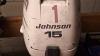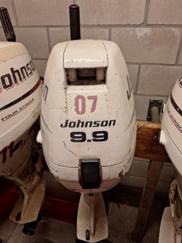 7 Johnson-bootmotoren (four stroke) in niet-werkende staat; 6 van 9,9 HP - 1 van 15 HP