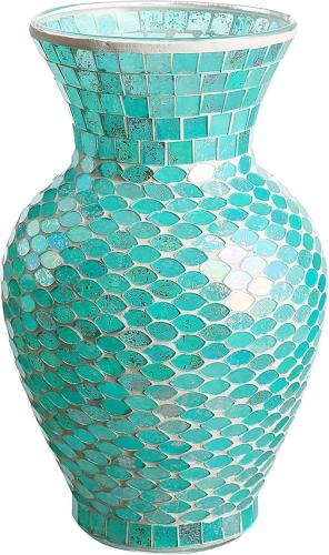 Ongeopend, ok, WHOLE HOUSEWARES 10,5" hoge mozaïek glazen vaas (blauw), melk 1,5, B07S4HWZL6