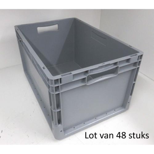 Afmetingen: 600x400x325mm hoog - 60L - Materiaal: PP recycle - Kleur: grijs - Gewicht: 2,5kg - Goedgekeurd voor gebruik voedingsmiddelen - Staat: Nieuw