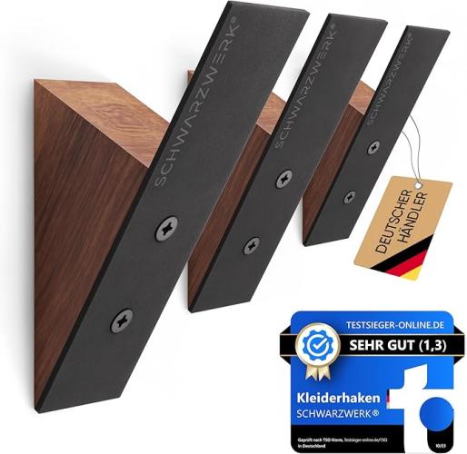 Ongeopend,ok, 2 X SCHWARZWERK Wandhaken, kledinghaken, set van 3, met montagemateriaal, stijlvolle garderobehaken, hoedhaken, garderobehaken, jashouder, zwart-walnoot,B0CHK61L1B
