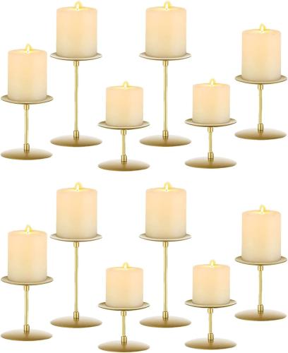 Ongeopend, ok, Romadedi Kaarsenhouder - metalen ijzeren set van 12 verschillende pijler kandelaars, goudkleurig, moderne woondecoraties voor bruiloft, feest, Kerstmis, middelpunt, B0C4BB8CR6