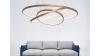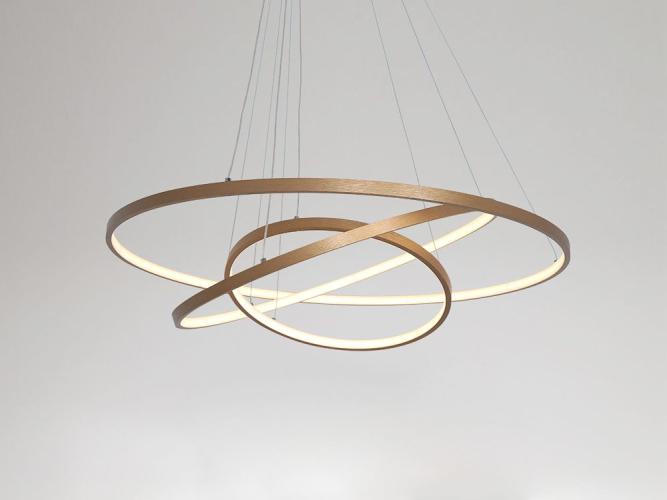 Aurora 360 design armatuur goud glans, geschikt voor de woonkamer, de keuken, in slaapkamers, studeerkamers, maar ook in ontvangstuimten, vergaderplekken, werkkamers of in de showroom. Modern design, beschikt over 3 x afzonderlijk draai- en kantelbare ringen welke allemaal voorzien zijn van een warm witte led lichtbron. In hoogte verstelbare ophangset, maakt het mogelijk om alle 3 ringen afzonderlijk van elkaar te kantelen of te verstellen. Eenvoudige montage, lichtgewicht eigenschappen. Aantal lichtbronnen: 3. Afmeting ca.: 60/40/20 cm. Kardanisch verstelbaar: Ja. Lichtbundel ca 110 graden. Lichtkleur: Warm wit. Lichtbron: Led. Aansluiting: 230 Volt. Kleur: Goud. Afwerking: Glans.