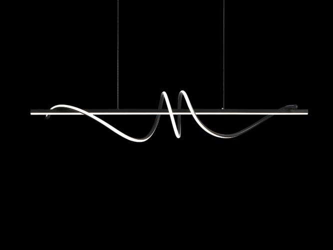 Flow led design armatuur zwart, Product eigenschappen: Aantal lichtbronnen: 1. Afmeting ca.: 1200 mm x 250 x mm x 1200 mm. Lichtbundel ca 170 graden. Licht sterkte 47 Watt: Lichtkleur: 3000K Warm wit. Aansluiting: 230 Volt. Kleur: Zwart. Afwerking: Mat. Dit betreft een nieuw product. Dit bijzondere design armatuur geeft een unieke uitstraling en kan in meerdere ruimten worden gebruikt zoals in de woonkamer, in slaapkamers of in de werkkamer, maar ook in de vide, winkel of in de showroom. De lamp is voorzien van een onafgebroken opalen led lichtbron welke een uniek en tijdloos licht effect geeft. De montage is eenvoudig en kan dankzij de lichtgewicht eigenschappen snel plaats vinden, dankzij de flexibele ophangset is de lamp eenvoudig in hoogte te verstellen en te positioneren. Het kleur van het licht is een zeer aangenaam warm wit en past goed in alle gebruikte ruimtes.