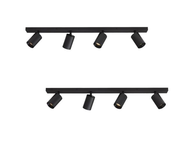 Lineair plafond / wand armatuur voorzien van 4 kantelbare spots. Geschikt voor gebruik in de woonkamer, de gang, slaapkamers, tevens geschikt voor verlichting van een etalage, ontvangstruimten, vergaderplekken of studeerruimtes. De spots zijn compact, volledig kantel en roteerbaar en te gebruiken met ieder led of halogeen lampje van het type GU10. De armaturen zijn mat zwart van kleur en zijn dimbaar. Type: plafond armatuur, opbouw, lichtpunten 4 x Fitting: GU10, Aansluiting: 230V, Dimbaar: ja. Conditie: Nieuw. Kleur: zwart mat Dit betreft een nieuw product.Gratis verzending