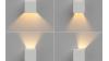 Deze bijzondere wand spots passen goed in het interieur van een modern huis en kunnen in de woonkamer, keuken of in slaapkamers worden gebruikt. Daarnaast kunnen ze de armaturen ook buiten worden gebruikt, aan de tuinafscheiding, aan de garage of tuinhuis. Het licht van deze wand spots schijnt niet alleen naar boven en naar beneden, maar kan zowel naar boven alsook naar beneden breder en smaller gemaakt worden. Zo kun je zelf creatieve lichtpatronen maken die in iedere ruimte net even anders zijn. De armaturen zijn eenvoudig zelf te monteren, geschikt voor alle droge en vochtige ruimtes en voorzien van een duurzaam led lampje met een extra warm witte lichtkleur en een sterkte van 8 Watt Led. Afmeting 10.5 x 10.5 x 10.5 cm. Kleur: Wit, Afwerking mat. Spatwaterdicht: Ja, IP54, Type: Wand armatuur, Bijzonderheden: Dit product is volledig nieuw.