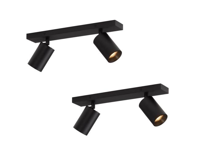 Lineair plafond / wand armatuur voorzien van 2 kantelbare spots. Geschikt voor gebruik in de woonkamer, de gang, slaapkamers, tevens geschikt voor verlichting van een etalage, ontvangstruimten, vergaderplekken of studeerruimtes. De spots zijn compact, volledig kantel en roteerbaar en te gebruiken met ieder led of halogeen lampje van het type GU10. De armaturen zijn mat zwart van kleur en zijn dimbaar. Type: plafond armatuur, opbouw, lichtpunten 2 x Fitting: GU10, Aansluiting: 230V, Dimbaar: ja. Conditie: Nieuw. Kleur: zwart mat Dit betreft een nieuw product.