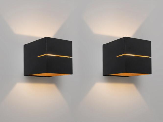 Cube Split wand opbouw spot zwart/goud, Afmeting ca 10 x 10 x 11.5 cm. Kleur: Zwart, Afwerking mat, Dimbaar Ja, Fitting G9. type: Wand armatuur, Bijzonderheden: Dit product is volledig nieuw. Deze bijzondere wand spots passen zowel goed in een modern als klassiek interieur en kunnen in meerdere plekken hun plek vinden zoals in de woonkamer, de keuken, op de gang, maar ook in slaapkamers, studeer ruimten of speelkamers. Het licht van deze prachtige wand spots schijnt niet alleen naar boven en naar beneden, maar ook deels naar voren, hierdoor onstaat een dynamisch lichtpatroon die in iedere ruimte een design effect geven. De armaturen zijn snel en eenvoudig te monteren, kunnen worden gebruikt met zowel led als halogeenlampjes en zullen direct voor een prachtige sfeerverlichting zorgen.