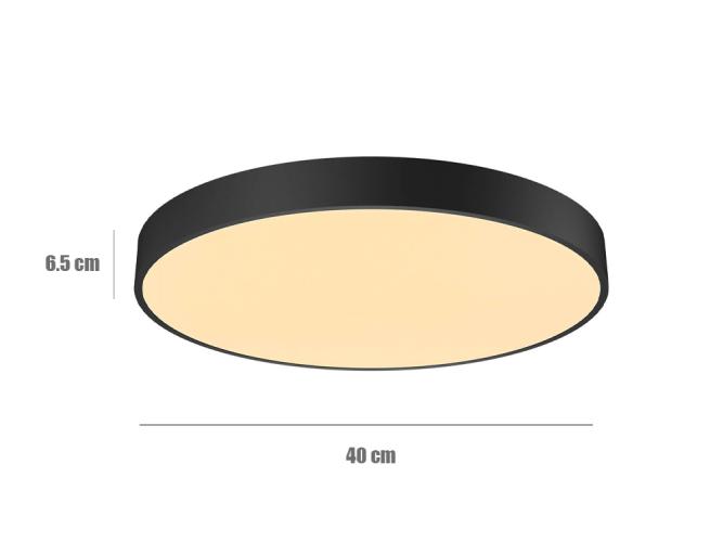 Deze modern vormgegeven plafond lampen zijn een ideale oplossing voor de verlichting van een keuken, woonkamer, gang of slaapkamers. Daarnaast mogen ze ook in de badkamer worden gebruikt, maar kunnen ook werkkamers, studeerkamers of andere woon een leefruimten van extra verlichting voorzien. De lampen hebben een hoogte van 6.5 cm en nemen daardoor zeer weinig ruimte in beslag. De lampen zijn voorzien van een energie besparende led lichtbron en geven warm wit licht.Type: pladondlamp, Afmeting: ca Ø 39.8 x 6.5 cm, Aansluiting: 230V, Ledlichtbronn ja. Lichtsterkte 32 Watt, 2500 lumen. Spatwaterdicht: IP54. Conditie: Nieuw.