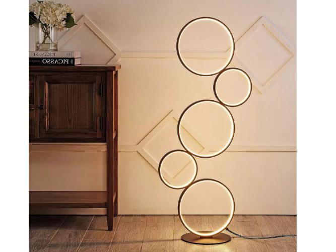 Product eigenschappen: Aantal lichtbronnen: 5. Afmeting ca.: 1200 mm x 380 mm x 200 cm .Lichtbundel ca 145 graden. Lichtkleur: Warm wit Aansluiting: 230 Volt. Kleur: Zwart. Deze bijzondere vloerlampen geven een unieke uitstraling en kunnen in meerdere ruimten worden gebruikt zoals in de woonkamer, in slaapkamers, in studeerkamers of speelkamers, maar ook in werkruimten, ontvangstplekken of in de showroom. De lamp is voorzien van 5 cirkels met een onafgebroken opalen led lichtbron welke een uniek en tijdloos licht effect geeft. De lampen voelen zich zowel goed nabij een muur, in een hoek maar ook vrijstaand. Dit betreft een nieuw product