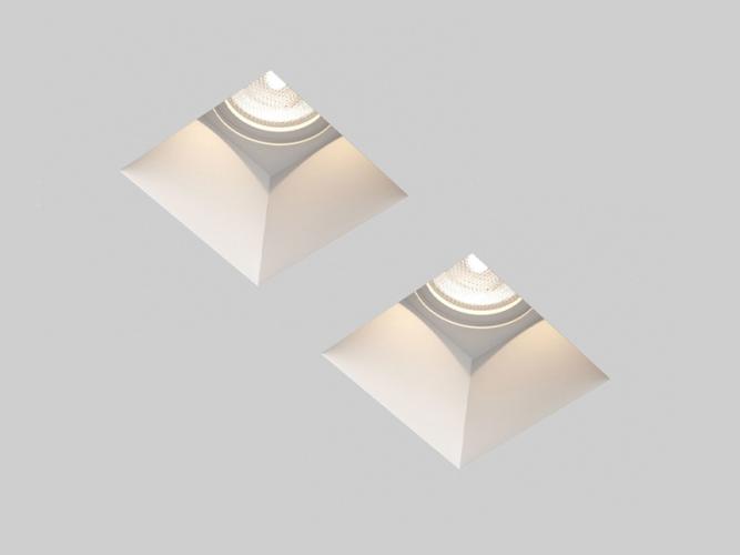 Randloze inbouwspots, geschikt voor montage in vals plafond, in beton of in breedplaat. Armaturen zijn na montage volledig met het plafond mee te stuccen met iedere soort stuc of gips en zijn het daarna overschilderbaar met naadloos eindresultaat. Armatuur hebben een strakke vorm, plaats van de lichtbron is dieper gelegen waardoor minder verblinding ontstaat, geschikt voor alle woon en werkruimten zoals werkkamers, ontvangstruimten, studeerplekken, de showroom, woonkamer, keuken, de overloop of in slaapkamers. Volledig dimbaar, te gebruiken met iedere lichtbron van het type GU10 of MR16. Product eigenschappen: Afmeting: 10 x 10 x 4.5 cm. Dimbaar: Ja. Overschilderbaar: Ja. Fitting: GU10. Verwisselbaar: Ja. Kleur: mat wit.