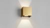 Deze bijzondere wand spots passen zowel goed in het modern als klassiek interieur en kunnen in de woonkamer, keuken, gang of in slaapkamers worden gebruikt. Vanwege de spatwaterdichte afwerking kunnen ze ook in of nabij vochtige plekken worden gebruikt zoals in de badkamer of buiten. Het licht van deze wand armaturen schijnt niet alleen naar boven en naar beneden, maar kan zowel naar boven als naar beneden breder en smaller gemaakt worden. Zo kun je zelf creatieve lichtpatronen maken die in iedere ruimte net even anders zijn. De armaturen zijn eenvoudig te monteren, geschikt voor zowel droge als vochtige ruimtes en voorzien van een duurzaam led lampje met een warm witte lichtkleur en een sterkte van 8 Watt Led. Afmeting 10.5 x 10.5 x 10.5 cm. Kleur: Goud, Afwerking geborsteld. Spatwaterdicht: Ja, IP54, Type: Wand armatuur
