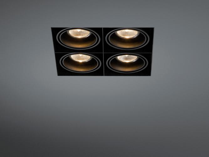 Ledsc4 Quad Minigrid in trimless armatuur zwart, randloze design inbouw spots, geschikt voor kantoor, winkel, showroom, ontvangstruimten, ook in woonkamer, de keuken, in slaapkamers, inloopkasten. Kardanisch kantelbaar en in hoogte verstelbaar, dimbaar, geschikt voor led en halogeen lampen van het type MR16. Merk: ledsc4, Type: 5414823016479, Minigrid in trimless, Afmeting ca.: 21.4 x 21.4 x 8 cm. Max aantal lichtbronnen: 4. Kardanisch verstelbaar: Ja. Dimbaar: Ja. Inclusief inbouwframe: Ja. Kleur: Zwart