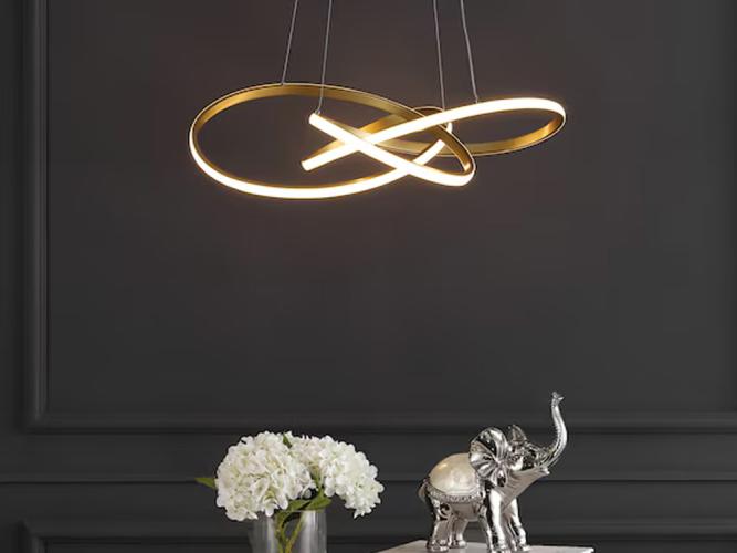 Dit bijzondere design armatuur geeft een unieke uitstraling en past in meerdere ruimten zoals de woonkamer, in slaapkamers, in de gang of vide, maar kan ook in de werkkamer, in ontvangstruimten of in de showroom worden gebruikt. Deze prachtige hanglamp is voorzien van een onafgebroken opalen led lichtbron welke een uniek en tijdloos licht effect geeft. De kleur van het licht is instelbaar van warm wit licht, naar neutraal wit licht, naar daglicht wit, zo kan deze chique pendellamp zich aanpassen aan de gebruikte ruimte en kan hij overal net even iets anders zijn. De montage is eenvoudig en kan dankzij de lichtgewicht eigenschappen snel plaats vinden, dankzij de flexibele ophangset is de lamp eenvoudig in hoogte te verstellen te kantelen en te positioneren. Product eigenschappen: Aantal lichtbronnen: 1. Afmeting ca.: 1200 mm x 600 mm x 800 mm.Lichtbundel ca 165 graden. Licht sterkte 60 Watt: Lichtkleur instelbaar: 3000K (Warm wit) 4000K (Neutraal wit) 6000K (Daglicht wit)Aansluiting: 230 Volt. Kleur: Goud. Afwerking: Glanzend. Dit betreft een nieuw product, Gratis verzending Benelux