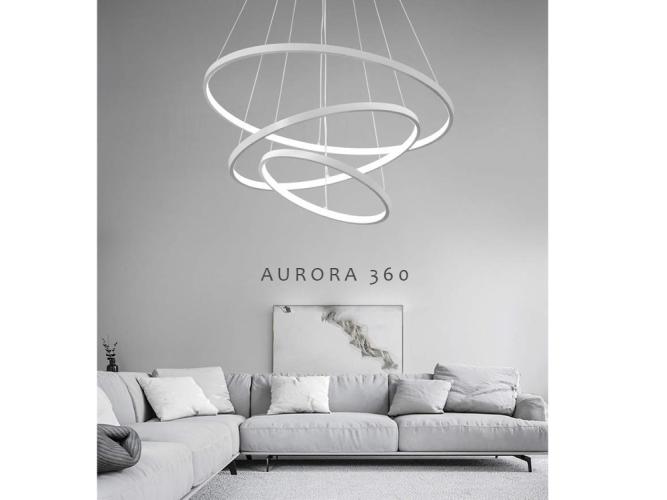 Het bijzondere Aurora design armatuur geeft een unieke uitstraling en past in meerdere ruimten zoals in de woonkamer, keuken, gang, in de vide, in slaapkamers of in speelkamers.Deze modern vormgegeven hanglamp beschikt over 3 x afzonderlijk draai- en kantelbare ringen welke allemaal voorzien zijn van een warm witte led lichtbron. Dankzij de verstelbare ophangset is het mogelijk om alle 3 ringen afzonderlijk van elkaar te kantelen of te verstellen. Zo kan deze chique pendellamp in iedere ruimte net even anders zijn. De montage is eenvoudig en kan dankzij de lichtgewicht eigenschappen snel plaats vinden. Aantal lichtbronnen: 3. Afmeting ca.: 60/40/20 cm. Kardanisch verstelbaar: Ja. Lichtbundel ca 110 graden. Lichtkleur: Warm wit. Lichtbron: Led. Aansluiting: 230 Volt. Kleur: Wit. Afwerking: Mat.