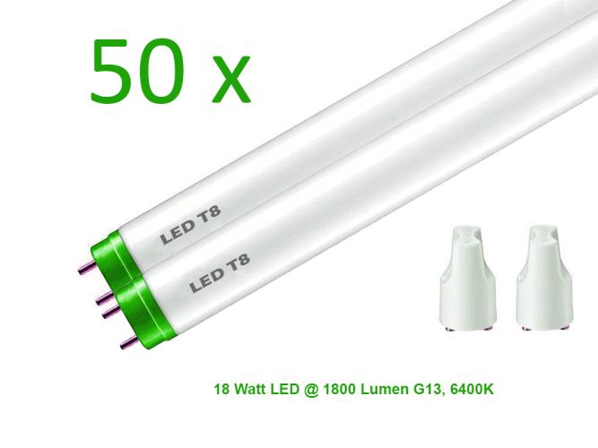 50 x LED TL Buizen 6400K daglichtkleur, 18 Watt