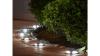 Deze grond spots kunnen overal en snel geplaatst worden en kunnen de tuin op een sfeervolle manier verlichten, maar ook zorgen voor een praktische verlichting van het terrras, een pad of de oprijlaan. De spots hebben een schemersensor en zijn zon oplaadbaar, de verlichting gaat automatisch aan wanneer het donker wordt en zal ook zelf weer uitgaan wanneer het licht wordt. De ingebouwde zonnepanelen laden de spots binnen 4-6 uur weer volledig op. De brandtijd bedraagt na een volle oplading ca 16 a 18 uur . Type: Grondspots, Lichtbron: led, inbegrepen, lichtkleur: helder wit, IP67 spatwaterdicht. Afmetingen ca 12 x 4 cm, maximale belasting 500 Kg, Conditie: Nieuw