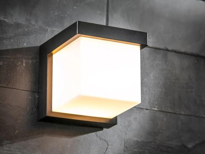 Deze wandlampen zijn subtiel aanwezig en zeer geschikt voor gebruik bij de voorgevel, bij de deur, langs paden, patio's, terrassen en veranda's. Daarnaast kunnen de lampen ook binnen worden gebruikt, in de badkamer, gang of toilet. De lampen zijn volledig afgeschermd tegen spatwater en voorzien van een duurzaam led lampje met een sterkte van 9 Watt. Dankzij de opalen diffusor onstaat er een zacht en vriendelijke licht. De lampen zijn snel en eenvoudig zelf te monteren en zullen direct voor een unieke sfeer zorgen. Afmetingen: 11.5 x11.5 x 13 cm, Kleur: Grafiet Zwart, Afwerking mat. Spatwaterdicht: Ja, IP44, Slagvast bestendig, type: wand lamp. Lichtbron: ja, inbegrepen, 9 Watt A++ Powerled. Bijzonderheden: Dit product is volledig nieuw